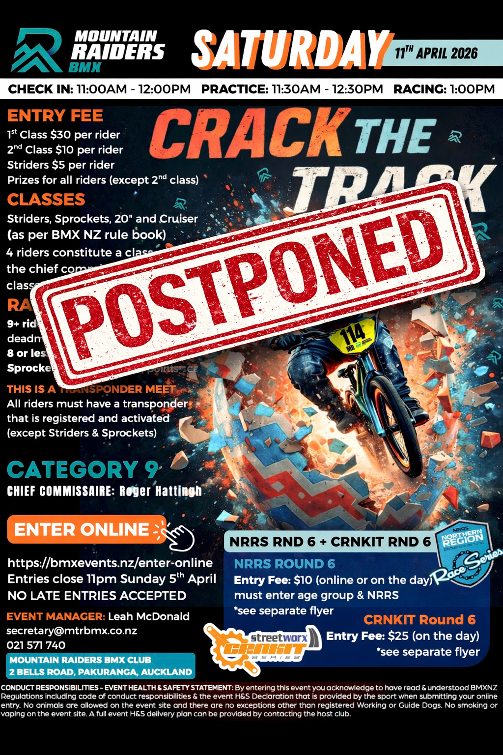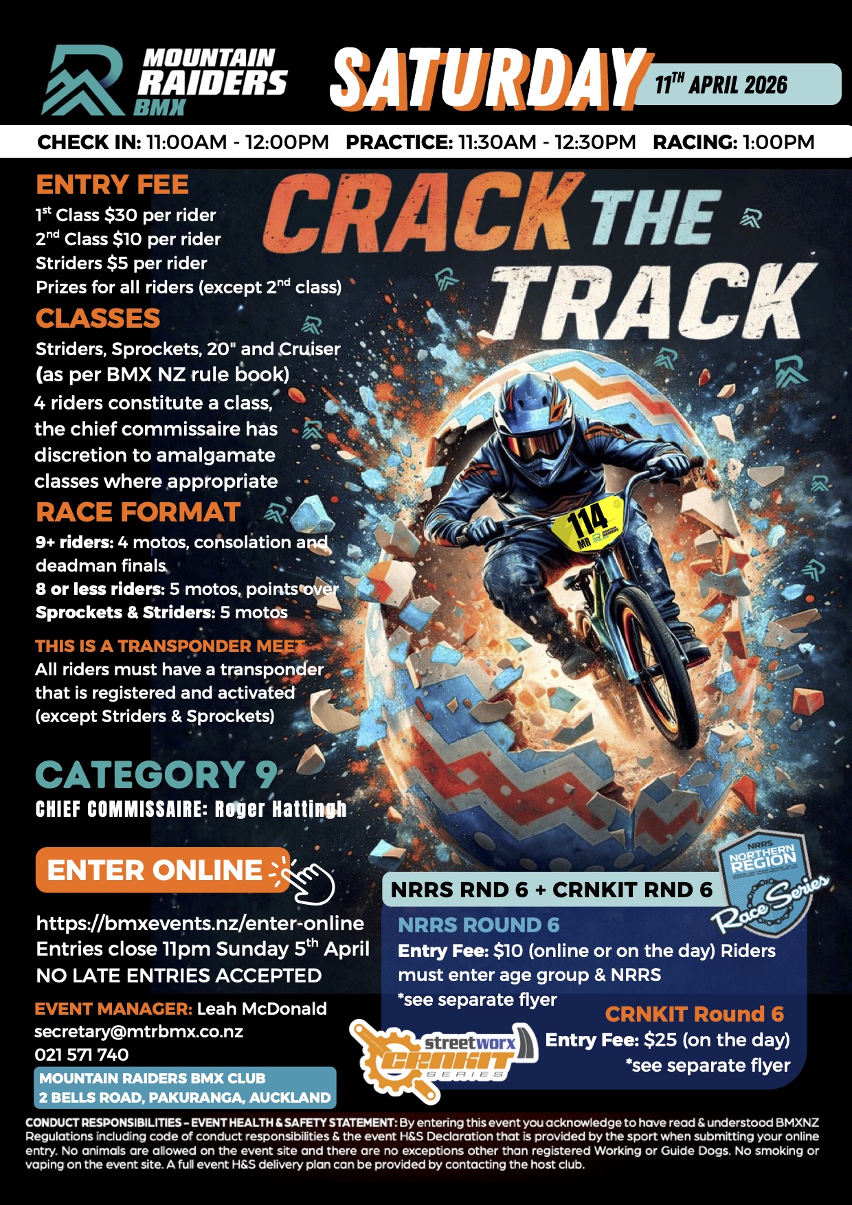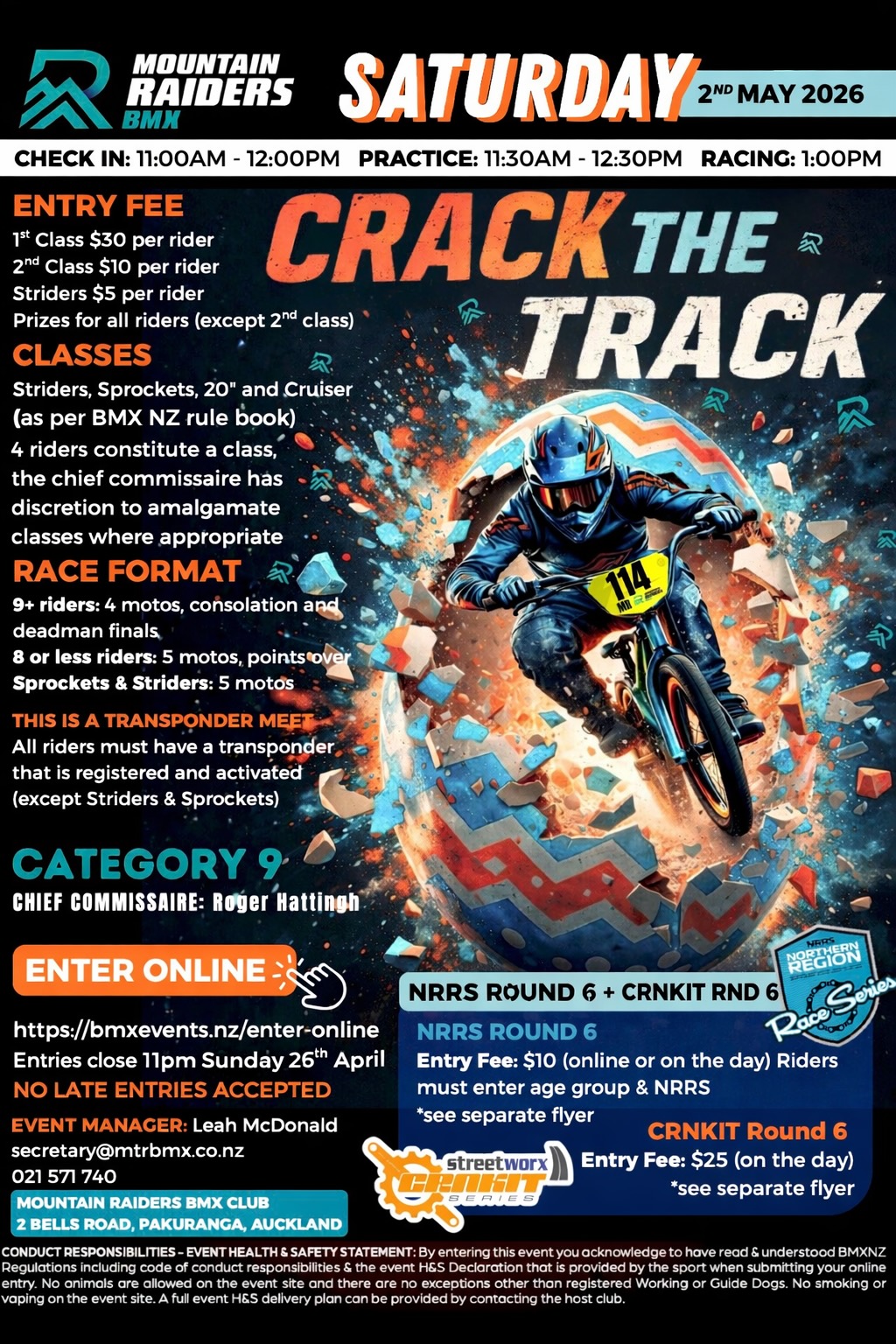 Entries: https://bmxevents.nz/enter-online Payment via Credit card or Poli-Pay